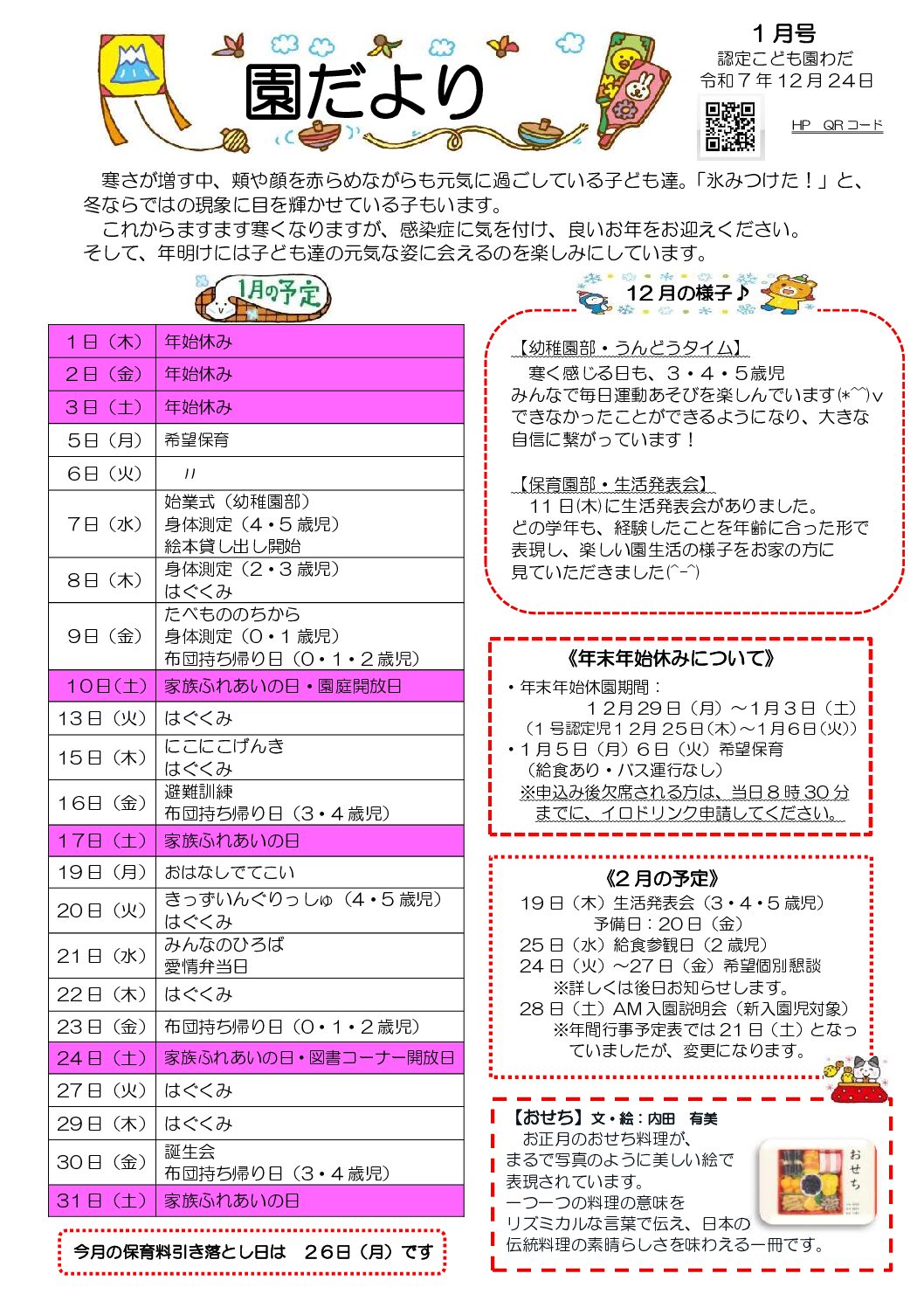 2025.12.24 園からのお知らせ1月の園だよりです♬