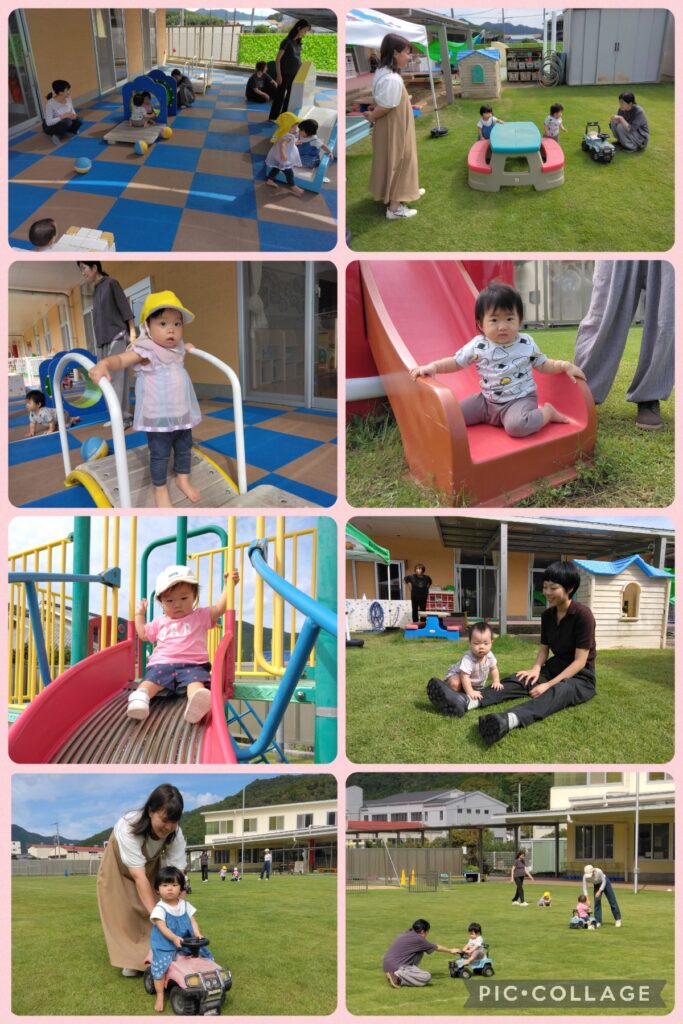 よちよち歩きの子は、トコトコと自分の好きな所に移動しトンネルをくぐったり、すべり台をすべったりして楽しみました。伝い歩きやハイハイの子もあちこち探索して笑顔が出ていましたよ✨