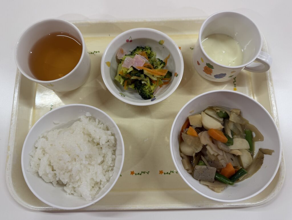 ご飯・筑前煮・ブロッコリーの玉ねぎドレッシング・ヨーグルト