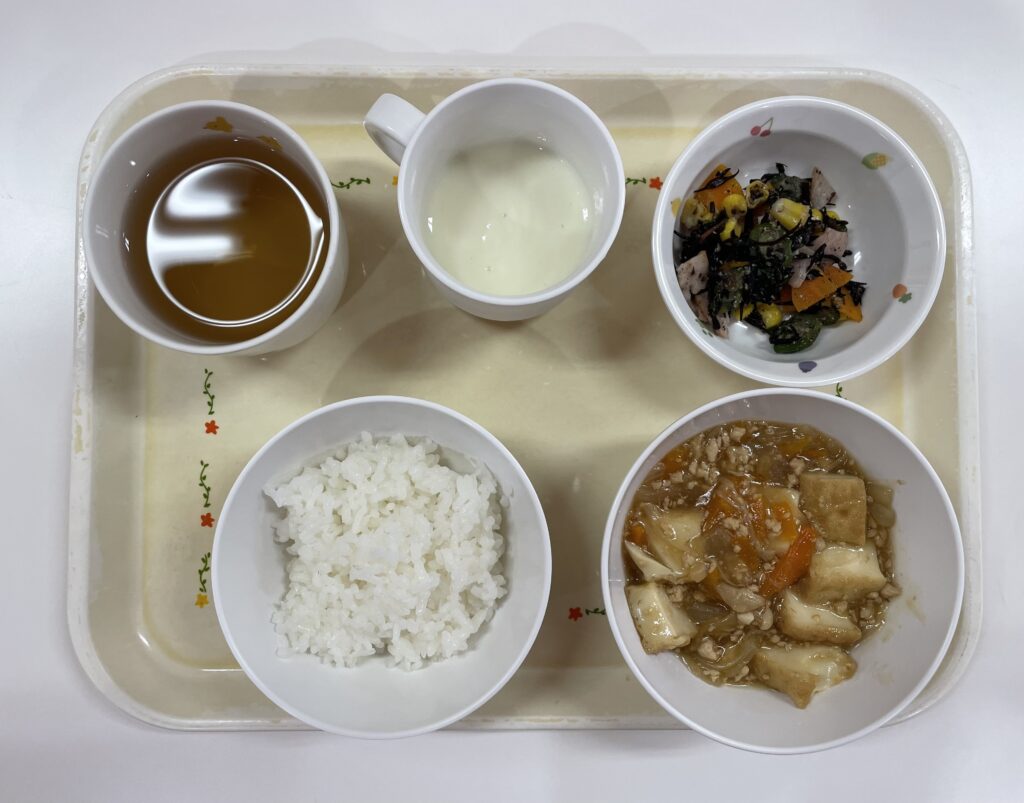ご飯・厚揚げのそぼろあん・ひじきの中華和え・ヨーグルト