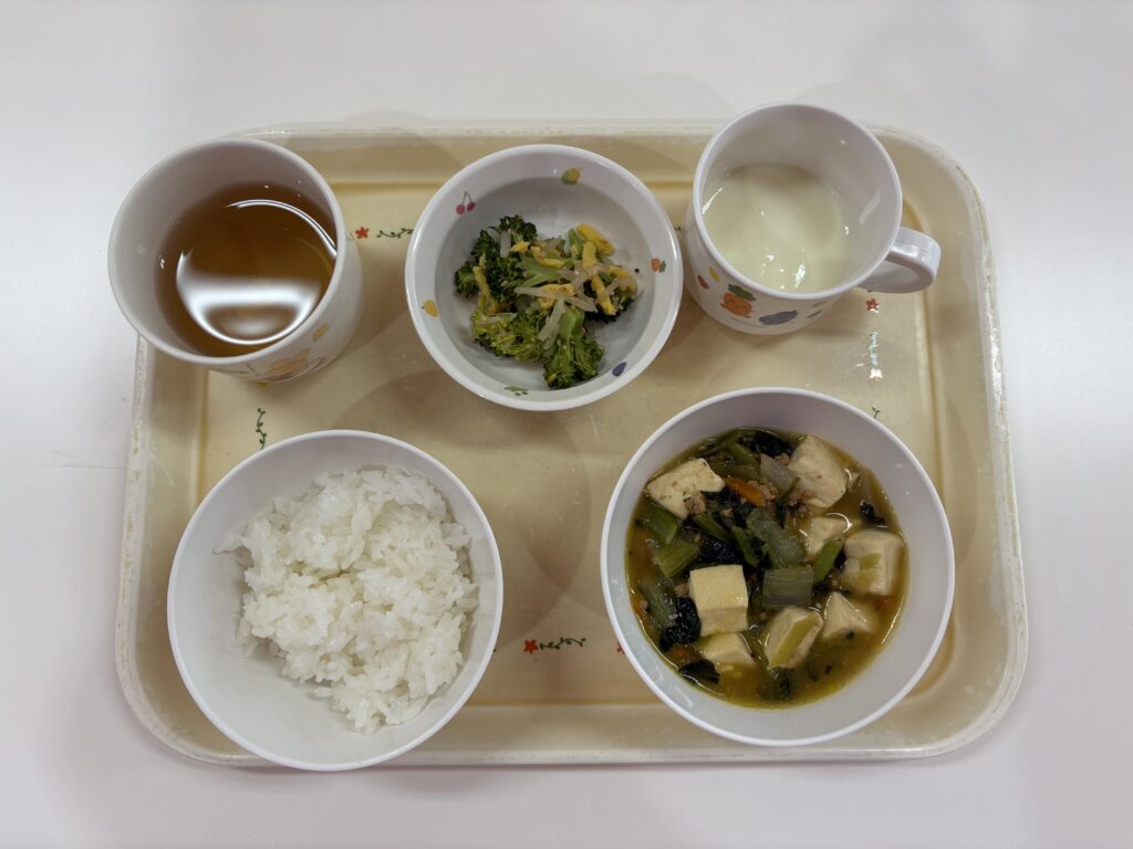 ご飯•豆腐の野菜そぼろ煮•ブロッコリーともやしのナムル•ヨーグルト