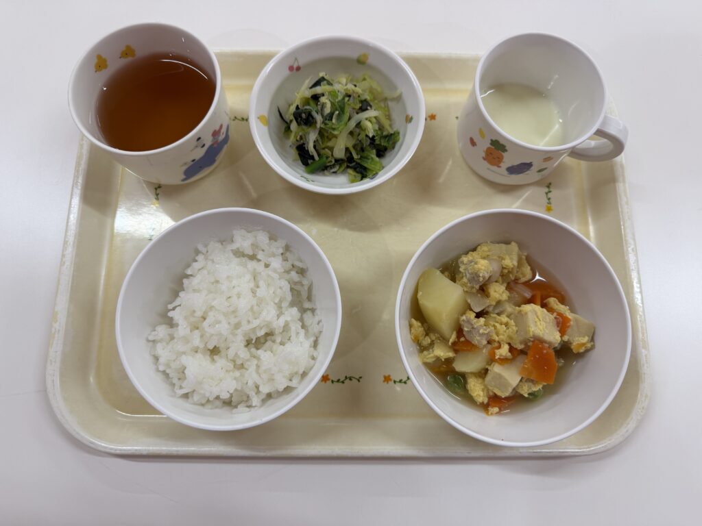 ご飯・高野豆腐の卵とじ・小松菜のしらすサラダ・ヨーグルト
