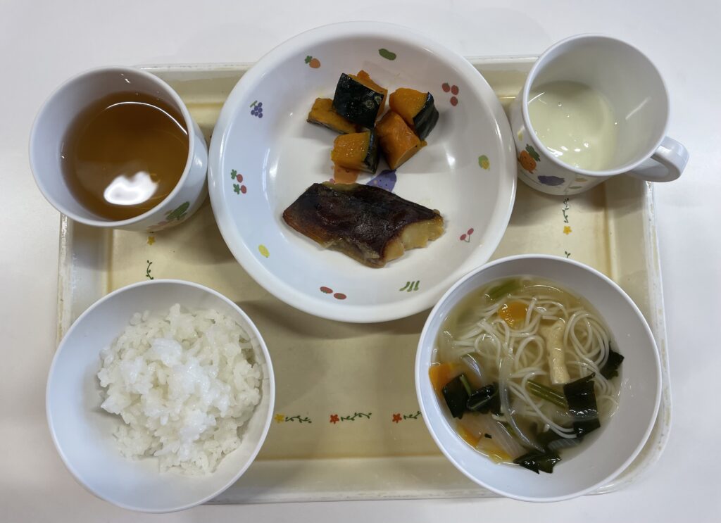 ご飯・ほっけの西京焼き・焼きかぼちゃ・そうめん汁・ヨーグルト