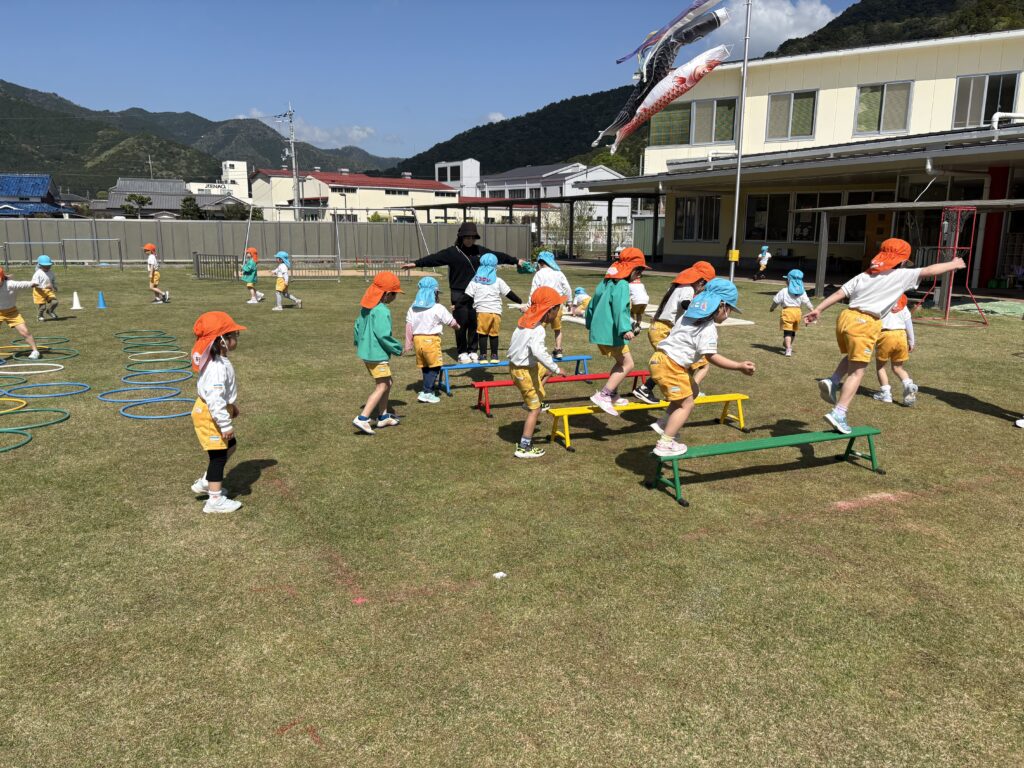 らいおん組ときりん組のうんどうタイム♫ワクワク、チャレンジ!らいおん組が挑戦する姿を見て「やってみよう!」と、きりん組も挑戦♫