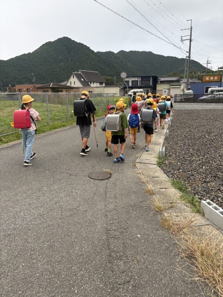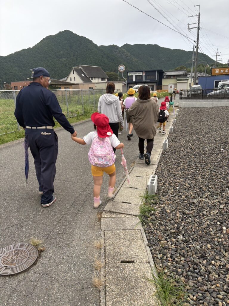 今日は5歳児、らいおん組の登校練習でした。地区毎に分かれて、小学校のお兄さん、お姉さんと一緒に歩いて登校しましたよ😊お家の方も一緒に歩けて、にこにこ顔でした🎶